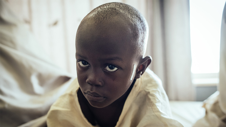 Questo piccolo ha solo sei anni ed è colpito da cataratta congenita a tutti e due gli occhi. Lui vive a Kaduna, in Nigeria, in un luogo molto povero dove sono assenti strutture sanitarie specializzate.
